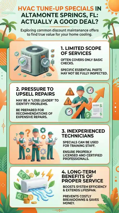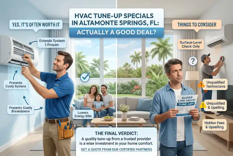 Most HVAC tune-up specials you'll see advertised in Altamonte Springs fall into one of two categories: genuine preventive maintenance that extends your system's life, or a low-cost door-opener designed to generate upsell revenue. After servicing thousands of Central Florida homes, we know exactly how to tell them apart — and we'll show you how to do the same.